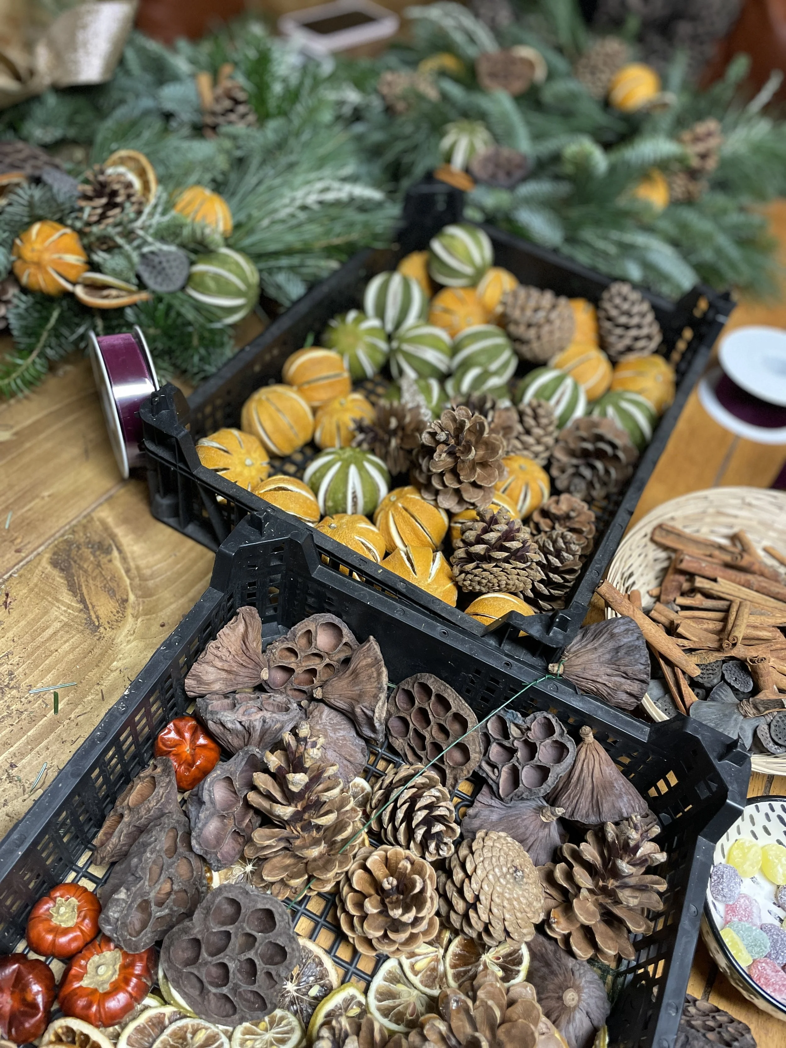 Every one of our workshops combines a highly sociable evening of creating your own large Christmas wreath using all natural materials alongside quality hospitality from renowned local venues.